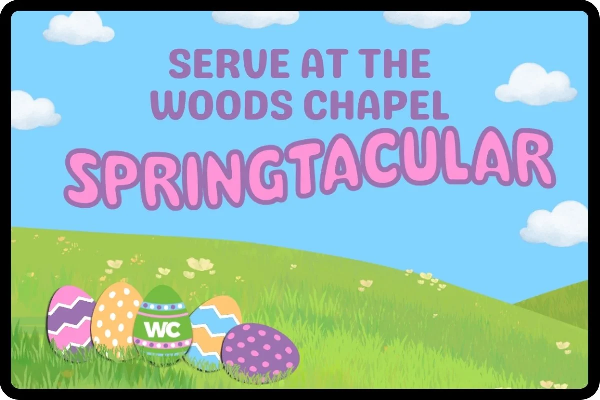 Spring is almost here, and we’re celebrating in a big way! Mark your calendar for Saturday, March 28, from 2–4 PM and join us for the first-ever Woods Chapel Springtacular—a fun-filled afternoon designed for the entire family. To make all this fun possible, we need an awesome team of volunteers! Sign up to serve and help create a day full of smiles, laughter, and great memories.